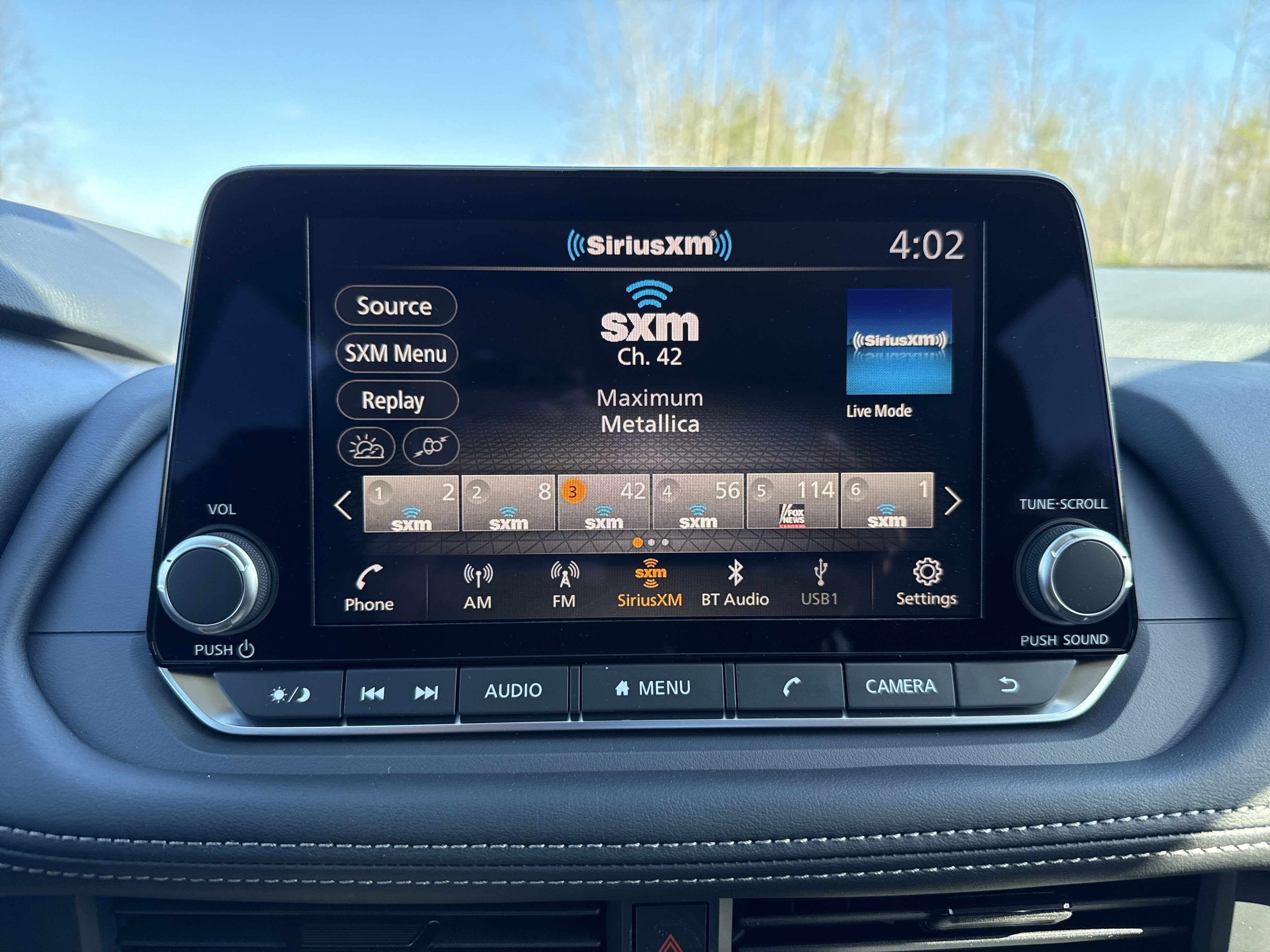 - Radio: AM/FM NissanConnect -inc: 6 speakers plus 2 tweeters, Apple CarPlay, Android Auto, 8" color touch screen display, Bluetooth®, 2 front USB type-C, Wi-Fi hotspot and NissanConnect Services powered by SiriusXM