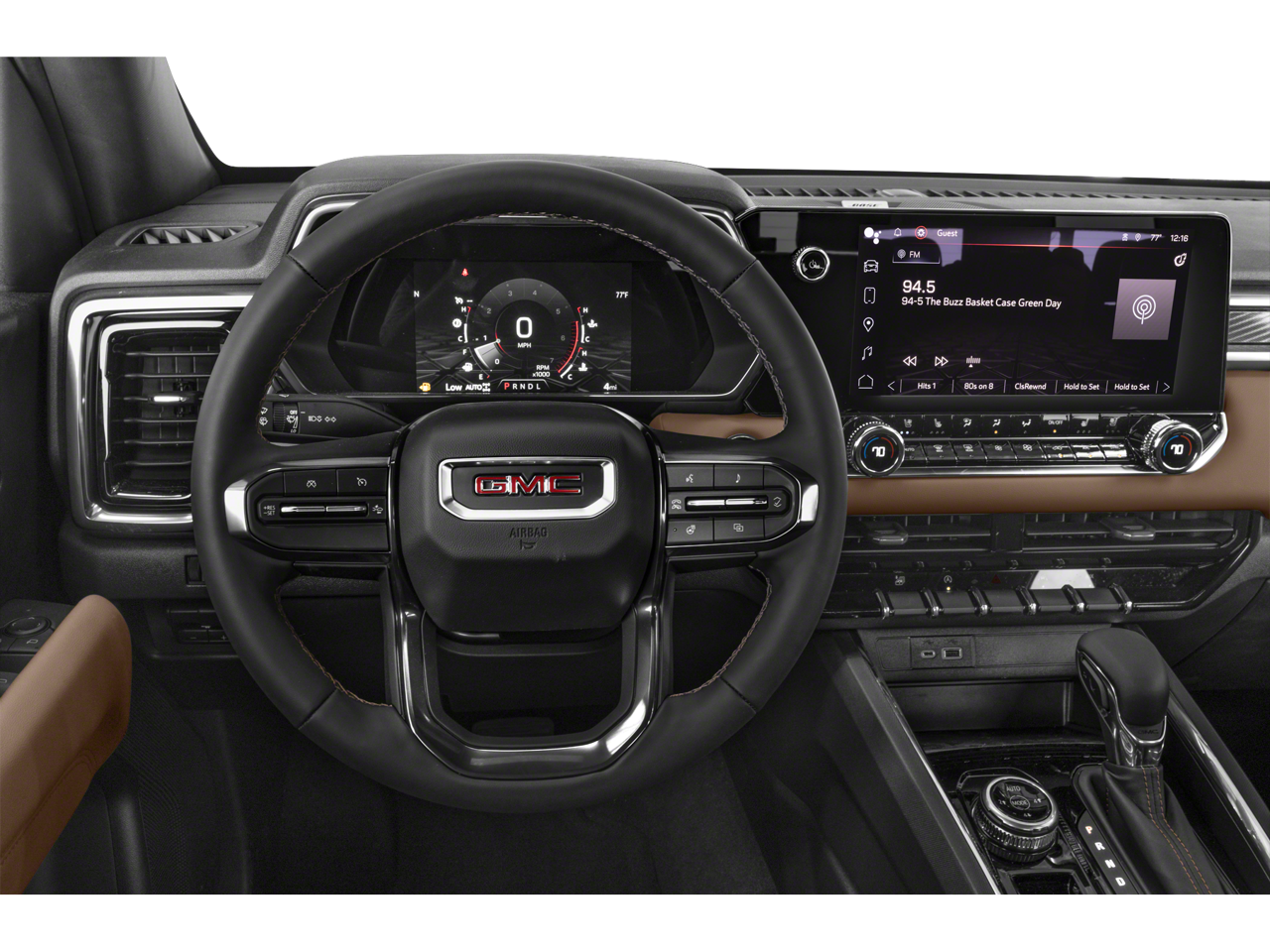 The 11.3" Premium GMC Infotainment System with built-in Navigation, Wireless Apple CarPlay, and Wireless Android Auto turns the cockpit into a command center. A Premium 6-Speaker Audio System, SiriusXM with 360L, and steering wheel audio controls keep your soundtrack as aggressive as the truck you are driving. The Power Inner Sliding Glass Sunroof and Bed-Mounted Sport Bar with 40" Off-Road Roof Light Bar from the Sports Bar Package make sure the truck looks just as mean when the sun goes down.